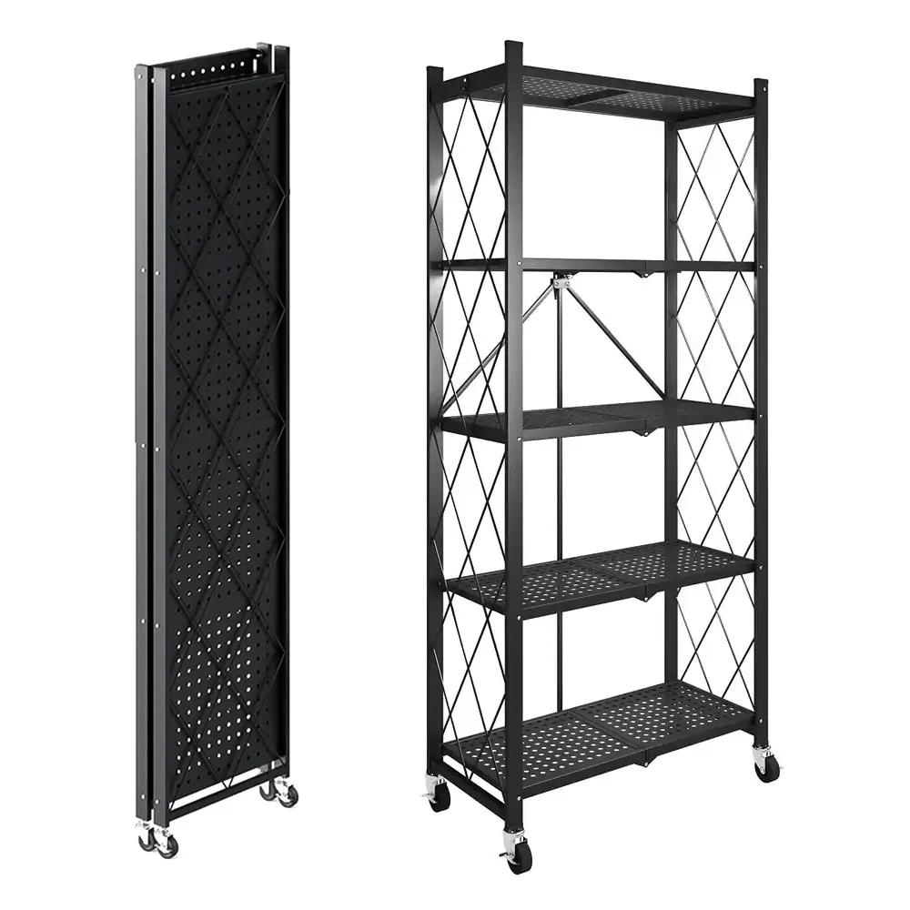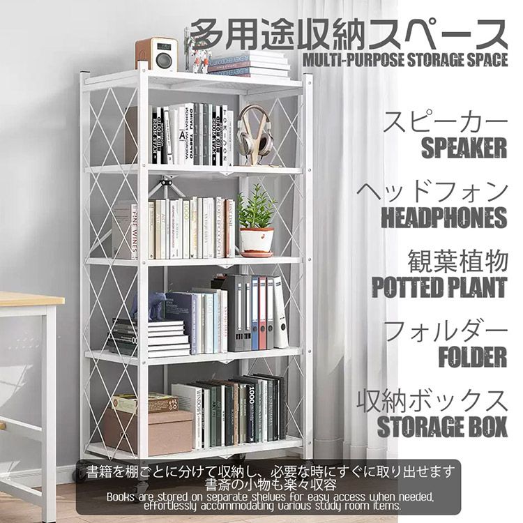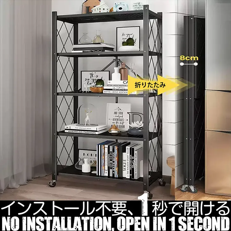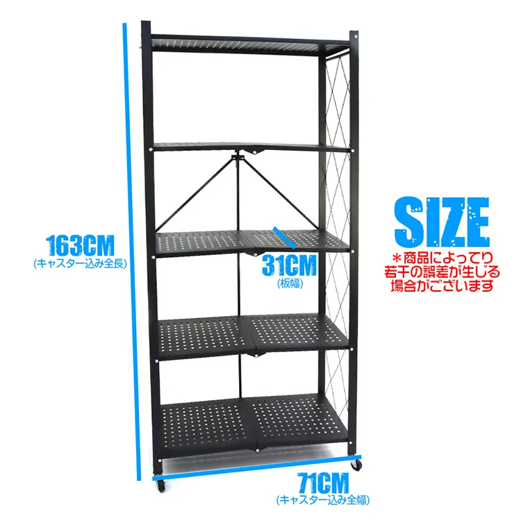 ■折りたたみ式の5段メタル収納ラックの出品です。家庭用収納やキッチン収納など、様々な場所で活躍します。