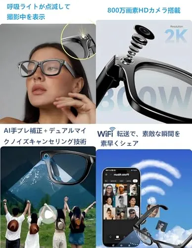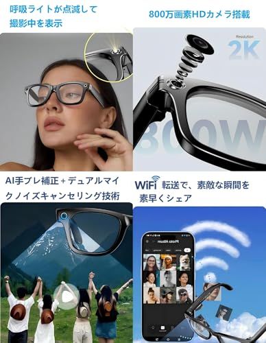 Findtime AIスマートグラス AI通訳ガラス 800万画素カメラ EIS防振撮影 防水防塵 IP65対応 音声操作 AI音声アシスタント 翻訳機能付き ダブルマイクノイズキャンセル Bluetooth通話 音楽再生 3種レンズ選択可能t