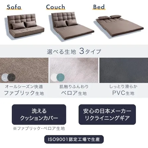【スタッフおすすめポイント!】 ・3つのスタイルで使える3wayソファベッド ・背もたれは14段階調節でお好みの角度に設定可能 ・頭までしっかり支えるハイバック ・同色クッション2個付き ・ローテーブルと合わせやすいロータイプ ・高品質&高耐久な国内メーカーギア採用 ・品質保証の証 ISO認証工場で生産