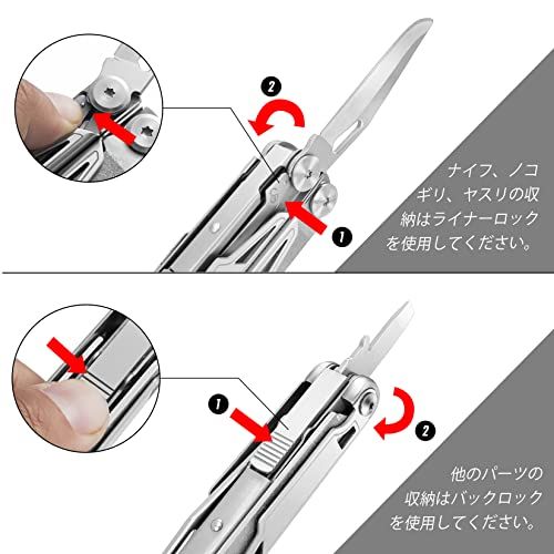 【安心な安全ロック】ロック機能が搭載して、ツールを180まで展開したら自動ロックかけるので、使用中折り畳まれないように、安全性を高めます。