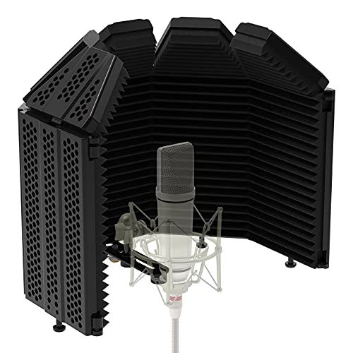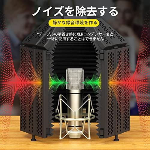 XTUGA リフレクションフィルター マイク 防音シールド 折り畳み式 吸音材 ボーカル録音放送用 放送用リフレクションフィルター 録音吸音材 (五つ折り)t