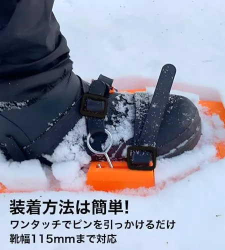 除雪作業などにも最適です。 プラスチック製なので、軽く耐久性も優れております! 靴幅、最大115mmまでご使用可能です、安心の日本製です。