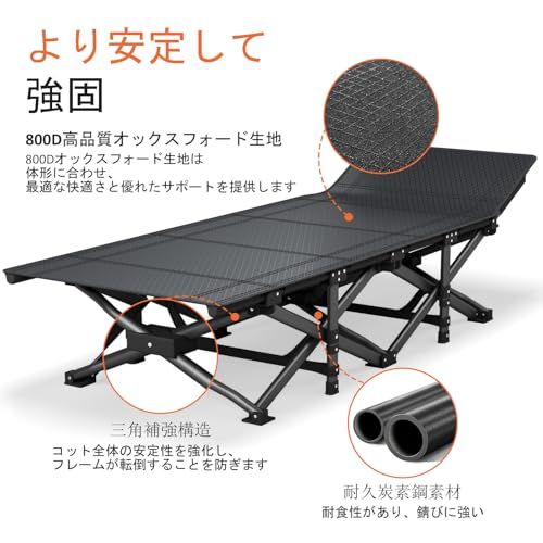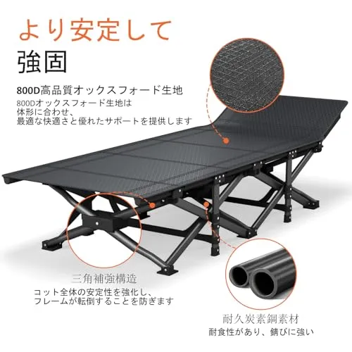 簡単セットアップ&携帯性: 組み立て不要。大人用スリーピングコットは10秒以内に折り畳んで付属の収納袋に入れられ、アウトドア・キャンプ・旅行・車中泊などに最適です。