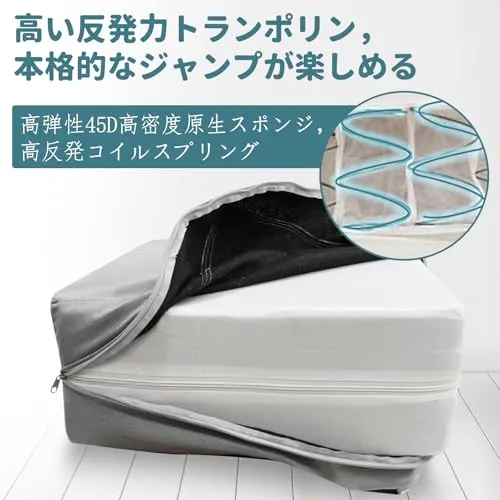 取り外し洗濯可能:トランポリンには耐久性と耐摩耗性の高いダブルレイヤー布カバーが使用されており、長時間使用しても摩耗や変形が少ないです。底部には粒子入りの防滑布が使用されており、踏み跳ねる際にトランポリンが滑る心配はありません。また、カバーは取り外して洗濯でき、お手入れが簡単です。