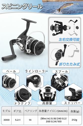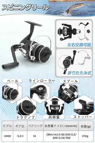 【高品質の釣り竿とリール】-この伸縮式釣り竿は炭素繊維素材を使用しており、FRP(繊維強化プラスチック)にはない強度と弾力性を備えています。軽量でありながら頑丈で、折れにくい設計です。3000番のスピニングリールは滑らかに作動し、ワンタッチで折り畳めるハンドルが特徴です。また、ネジを外すだけで簡単にハンドルを左右交換できます。