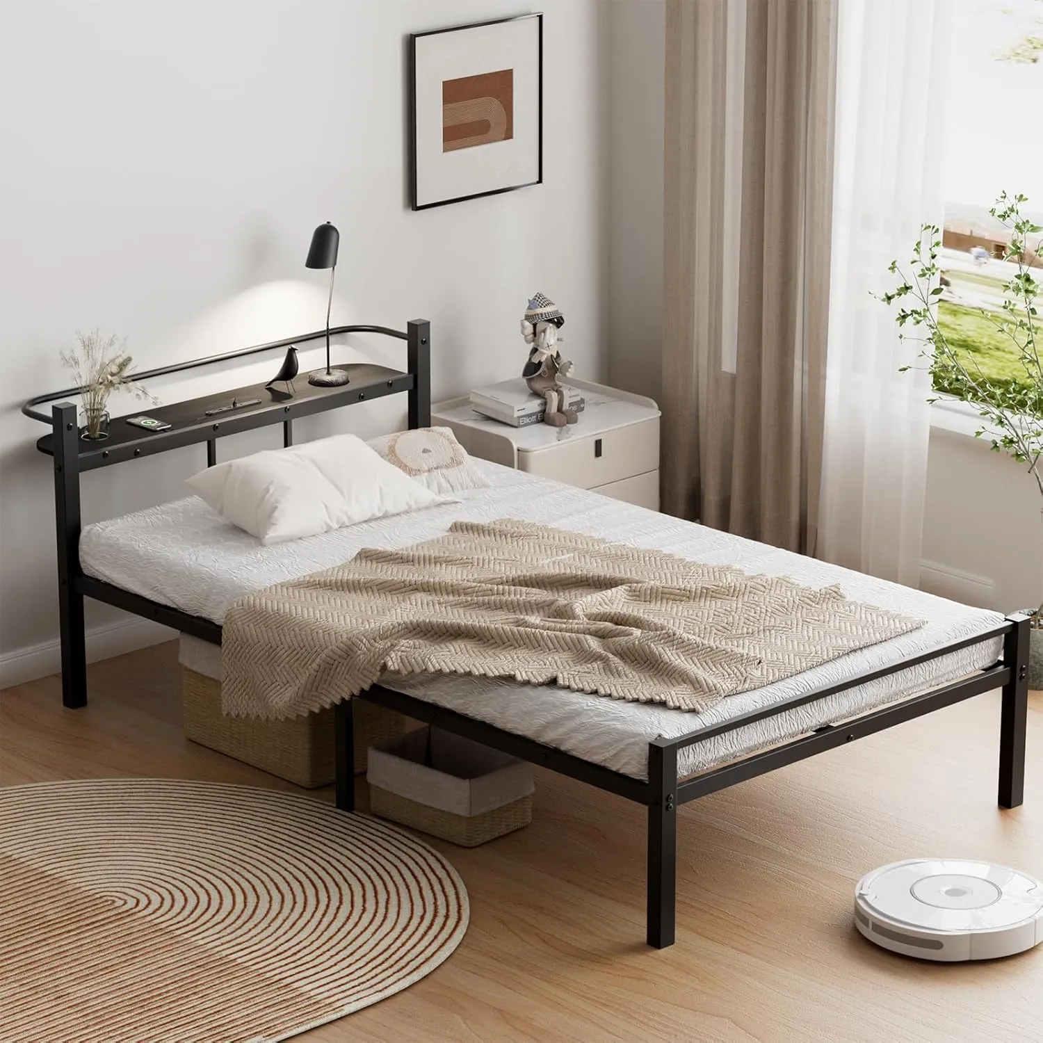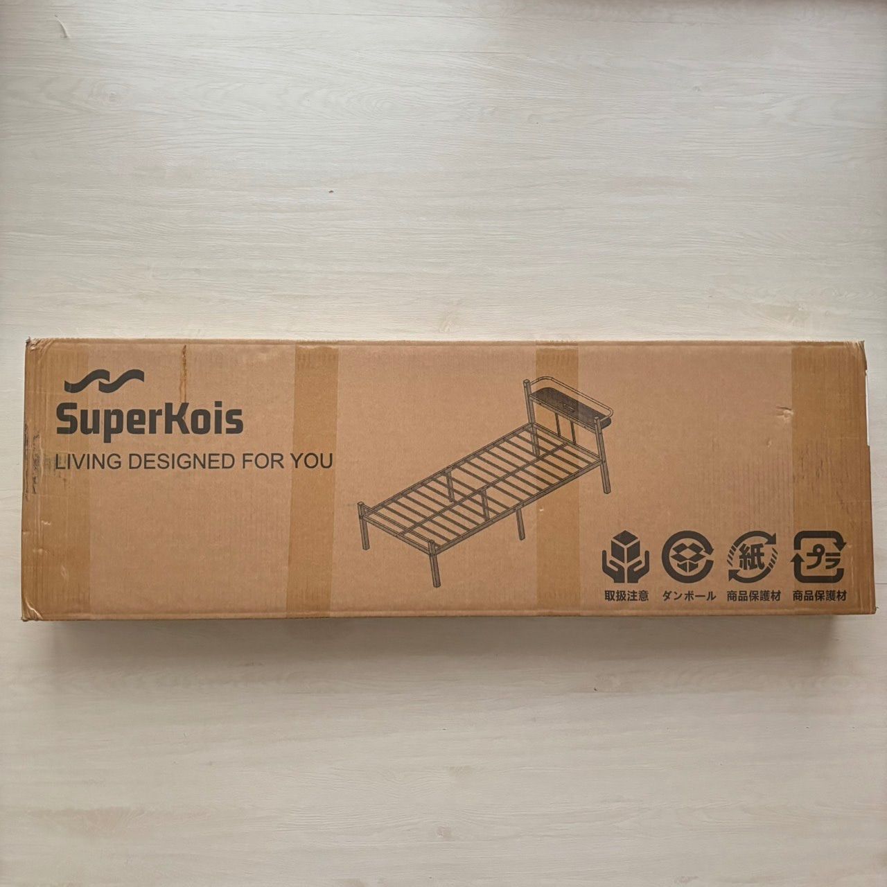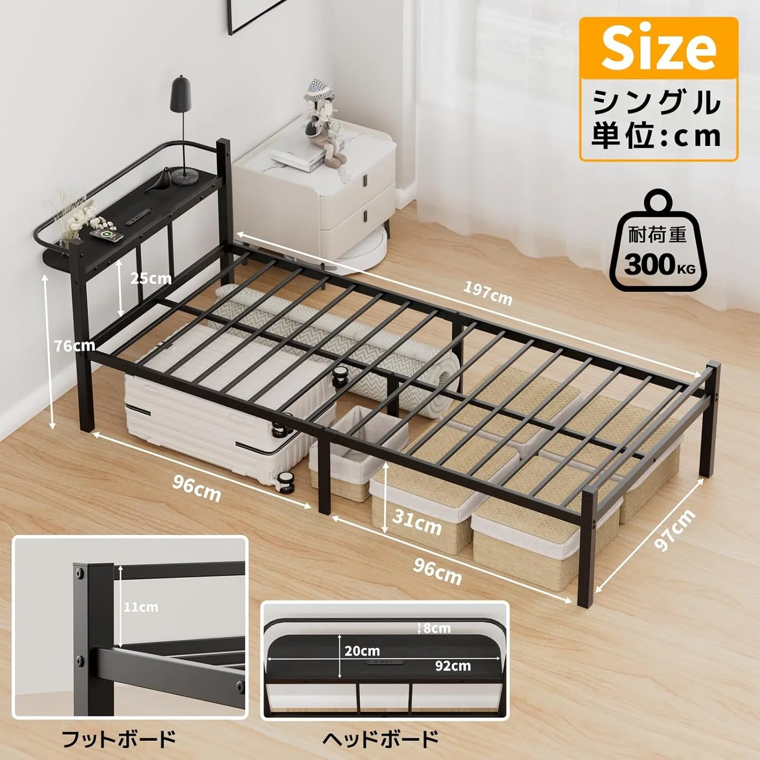 [SuperKois] ベッドフレーム シングル ベッド 宮棚 2口コンセント USB&Type-C パイプベッド 耐荷重300kg 頑丈 静音 耐久性 通気性 湿気対策 組立簡単 床下収納高さ31cm ブラック