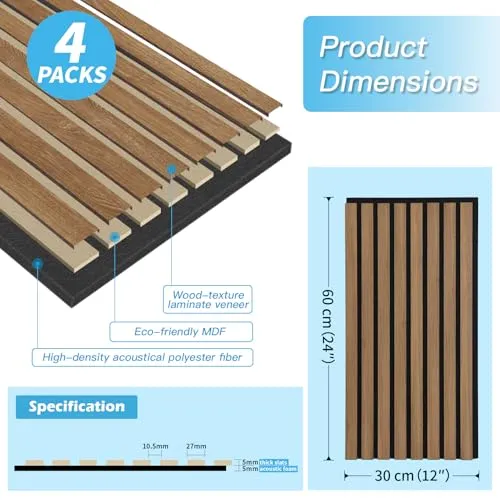 Art3d 吸音パネル ウッド 防音パネル 木目 きゅうおんパネル 腰壁パネル - 居間、寝室、テレビの背景壁、室内装飾 DIY - 4枚 / 60x30x1 CM / 施工面積0.72?、型番 731DW★tm
