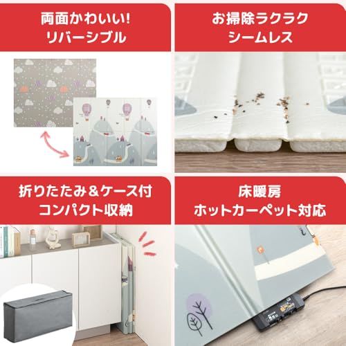タンスのゲン プレイマット リバーシブル 150×180cm 厚み1cm 折りたたみ 防水 防音 軽量 ベビーマット 子供部屋 床暖房対応 31800074(101729)t