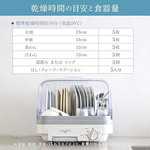 [山善] 食器乾燥器 大容量 (5人分) 120分 タイマー付き ライトグレー (自然対流式) (抗菌/防カビ) 小型 工事不要 YD-180(LH)t