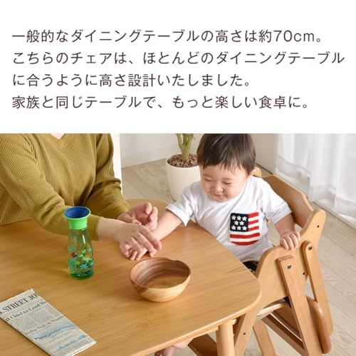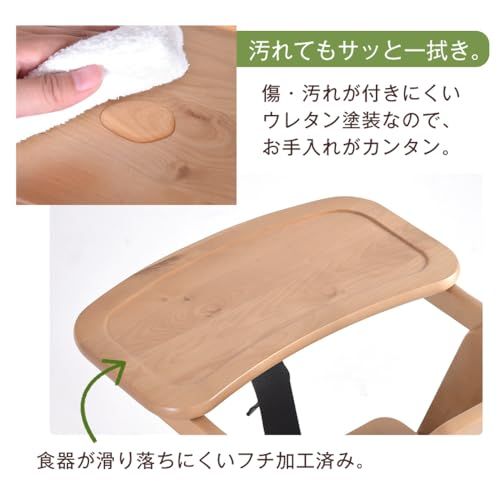 【備考】※木製品につき、多少サイズに誤差が生じることがあります。サイズにつきましては、すべておおよそのサイズとしてご覧ください。 ※木製品につき、ひとつひとつ風合いが異なります。木目によっては、多少色目が違って見える場合があります。 ※2021年2月12日より足の奥行を10cmへ広くし、素材をカバ材からカバ材・ラバーウッド材に変更しました。 ※36か月未満のお子様がご使用になる場合は、転倒防止のためテーブルやシートベルトを必ずご使用ください。 ※3使用前に必ずネジやボルトの部品が緩んでいないか確認し、緩んでいる場合は締め直してください。