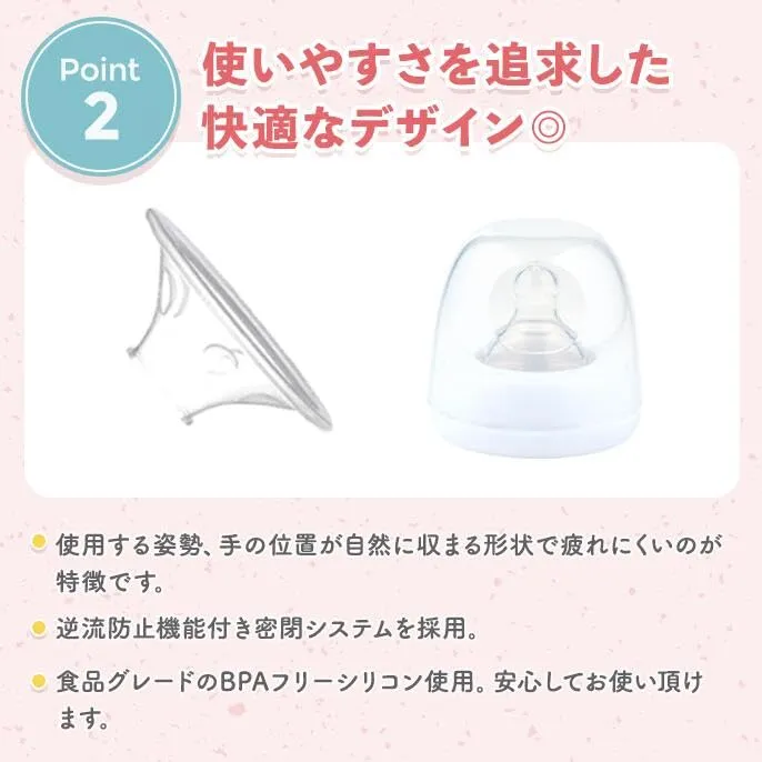 1つの電動ポンプでブラジャーに入れるハンズフリー&電動ハンディカップタイプの2Wayでご使用いただけます。カップを変えずに、忙しいママの時間を有効に活用できます。