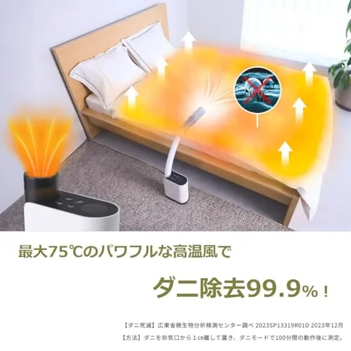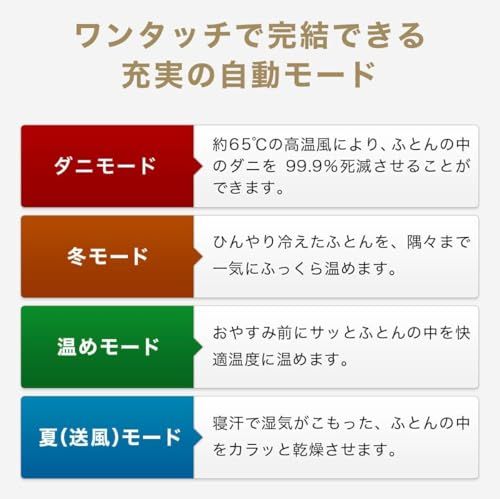 High Power : 最高温度75のパワフル高温風でダニを死滅。選べる5つのモードでいつでもふかふかで快適。
