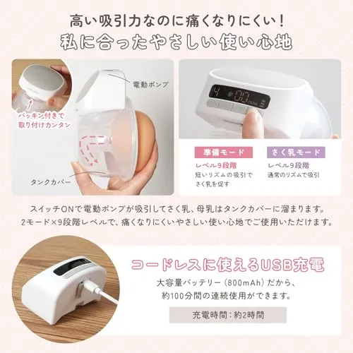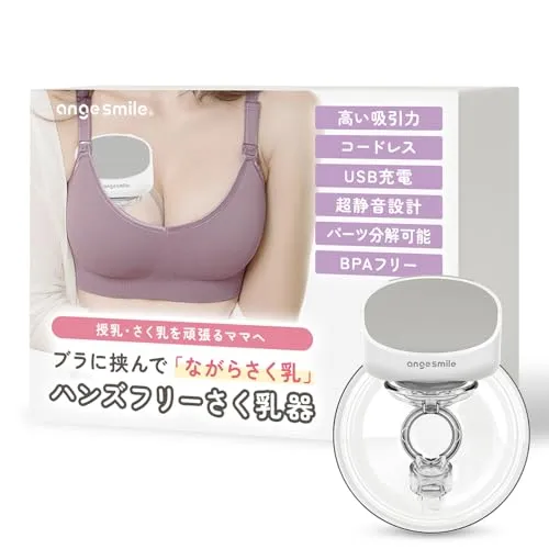 [“ながらさく乳”を叶える] アンジュスマイル 電動さく乳器 ハンズフリー 軽量230g コードレス USB Type-C充電 静音 夜間搾乳OK ブラ装着式 分解洗浄可 2モード9段階 お手入れ簡単 搾乳機 搾乳器 授乳ママ用 二個買いでお得t