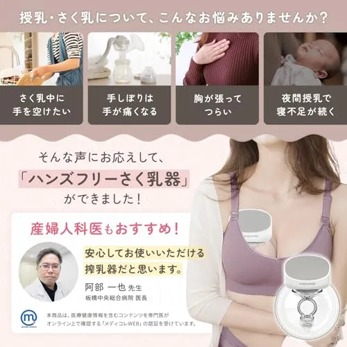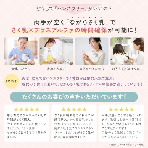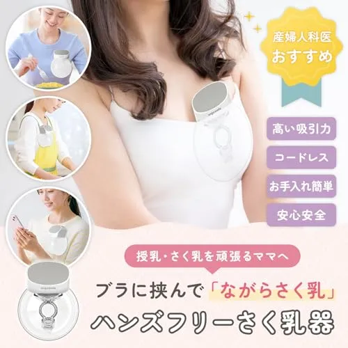 【忙しいママの“ながらさく乳”を叶える】お手持ちのブラジャーで挟むだけのハンズフリータイプ。約230gの軽量設計で、家事・食事・赤ちゃんのお世話をしながらでも快適にさく乳できます。両手が空くことで、育児の「ながら時間」をもっと自由に。