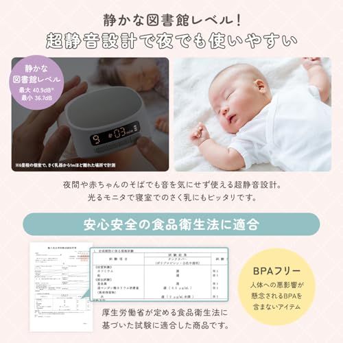 【夜間のさく乳も静かに安心】静かな図書館レベルの静音設計で、赤ちゃんを起こさずにさく乳可能。モニターライトも控えめに光るので、夜間の授乳リズムを邪魔しません。寝室や外出先でも安心して使えます。