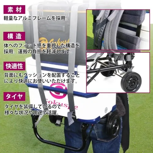 釣行の際に持参するクーラーボックスやバッカンなど、大型の荷物を運ぶときに便利なアイテムが背負子(しょいこ)です タイヤ付きなのでキャリーカートとしても利用できるなど様々なシーンで活躍、もちろん、安全性と快適性にもしっかりと配慮しているので安心してお使いいただけます 主な装備と特徴は以下の通りです