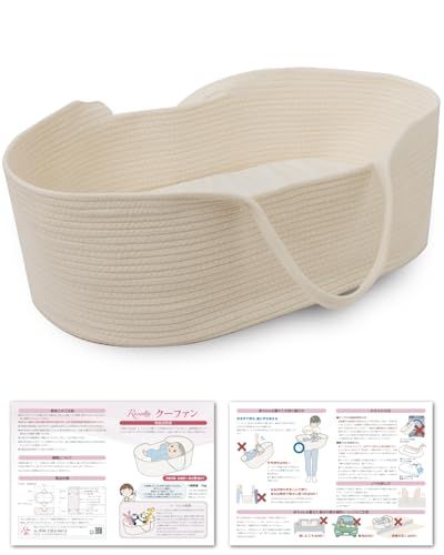 【保育士が監修】 クーファン クーハン 赤ちゃん 持ち運び ゆりかご 寝返り防止 添い寝 お昼寝 ベビーバスケット ベビーキャリー かご カゴ 籠 バスケット (ホワイト)t