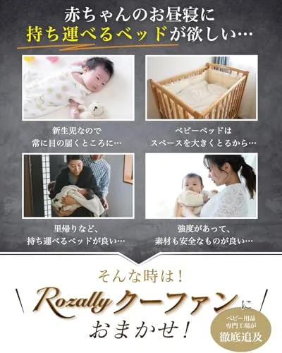 【保育士が監修】 Rozally クーファン がついに正式販売開始。 赤ちゃん と 添い寝 や お昼寝 をする時に 寝返り防止 機能がある ゆりかご 型の クーファン (クーハン) が欲しい…というお客様の声から生まれた 持ち運び 可能な ベビー用 クーファン (クーハン) です。 ベビーベッド の中で使用して、 寝返り の 防止はもちろん 乳幼児 がどこでも寝れるように “折りたたみ コンパクト”&”軽量”の 持ち運び 設計で企画させて頂きました。 企画では 新生児 や ベビー の育児に詳しい