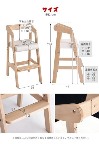 タンスのゲン ベビーチェア 木製椅子 ハイチェア クッション 木製 ハイタイプ キッズチェア 高さ調節可能 グレー 30600003(90204)t