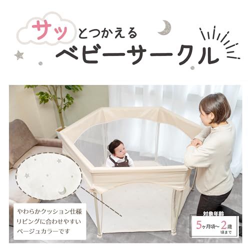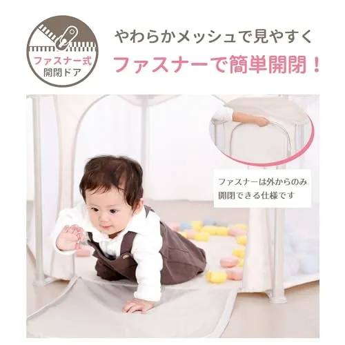 永和 サッとつかえるベビーサークル ベビー ゲート・ドア用品 工具不要 組み立て簡単 メッシュ素材 コンパクト収納 ファスナー扉 洗える インテリア馴染みt