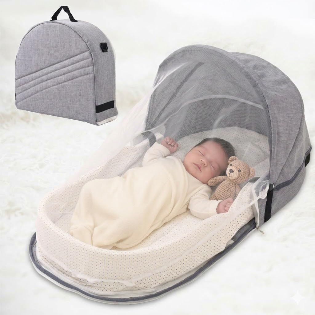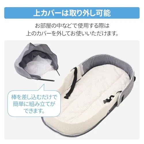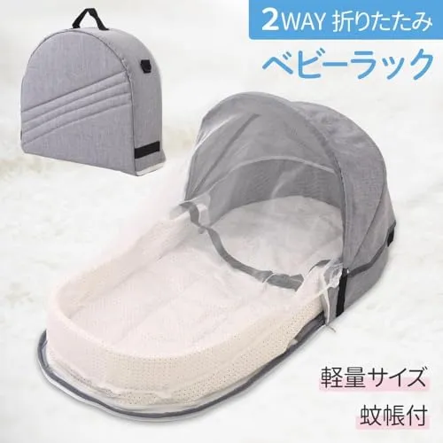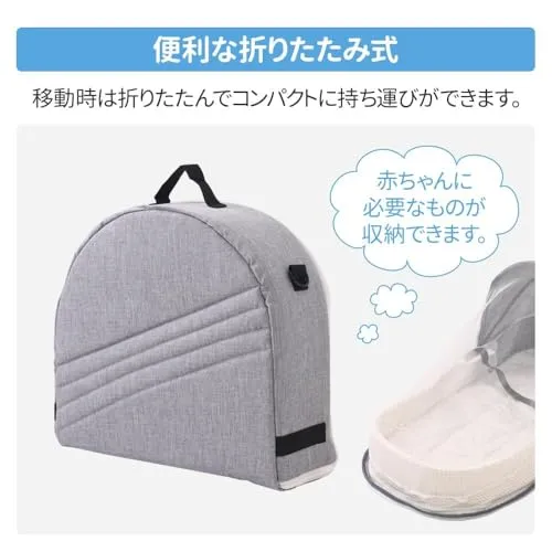 折りたたみができる持ち運びに便利な簡易ベビーベッド! お出かけ中でも必要な時にサッと広げて使用できます。