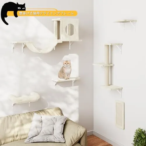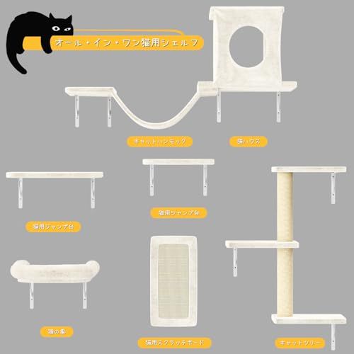 DoubleTT キャットウォーク 6つセット 猫用 キャットステップ 壁掛け式 DIY キャットタワー 猫家具 猫棚 猫ハウス ハンモック はしご 吊り橋 爪とぎポール スクラッチャー キャットツリー 猫用ステップ ベッド 階段 クライミングシェルフ サイt