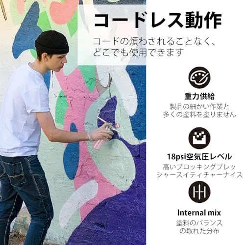 【オートエアブラシ&電池残量表示】このシングルとデュアルアクションエアブラシは、スイッチを必要とせず、トリガーを押すだけで動作します。デュアルモードは広い面積の作業に適しており、シングルモードは細かい作業に適しており、自由に液体の出力と放出を制御することができます。
