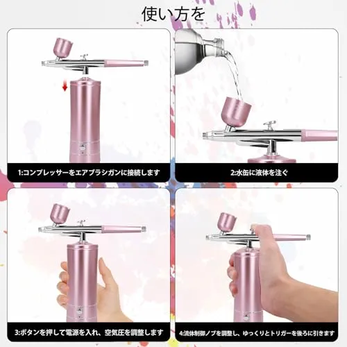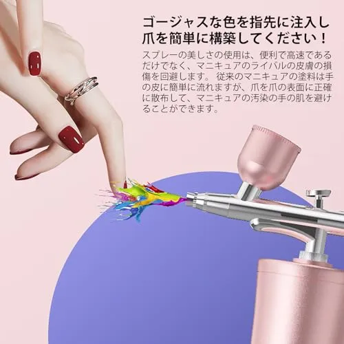【高空気圧&大風量】他の12-15PSIと6L型エアブラシと比較して、空気圧は80%増加し、8-10.5L空気流量と20-32PSIに達します。このエアブラシのノズルは0.4mmしかないので、水彩顔料、インク、染料だけでなく、適切に希釈した塗料をスプレーすることができます。