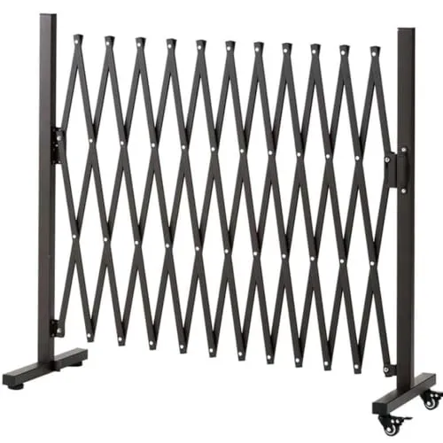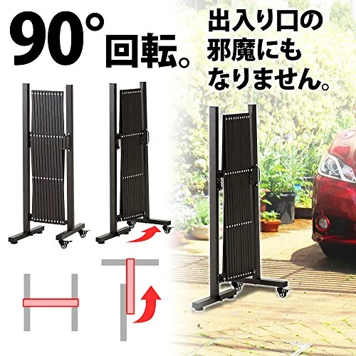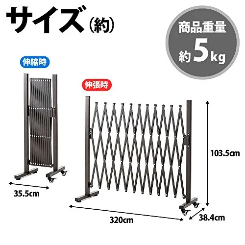 iimono117 アルミ伸縮フェンス キャスター付き シングル (高さ1m×幅3.2m) 門扉 エクステリア ゲート 伸縮 アコーディオンフェンス 足 角度 90度回転 L字置き (シングル)★tm