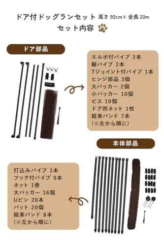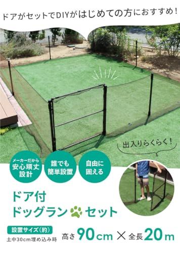 DAIM ペットフェンス ドア付き ドッグラン 高さ90cm 長さ20m フェンス 屋外 犬 ドッグランネット ドッグランサークル ゲージ ドッグランセット 自宅 ドッグフェンス★tm