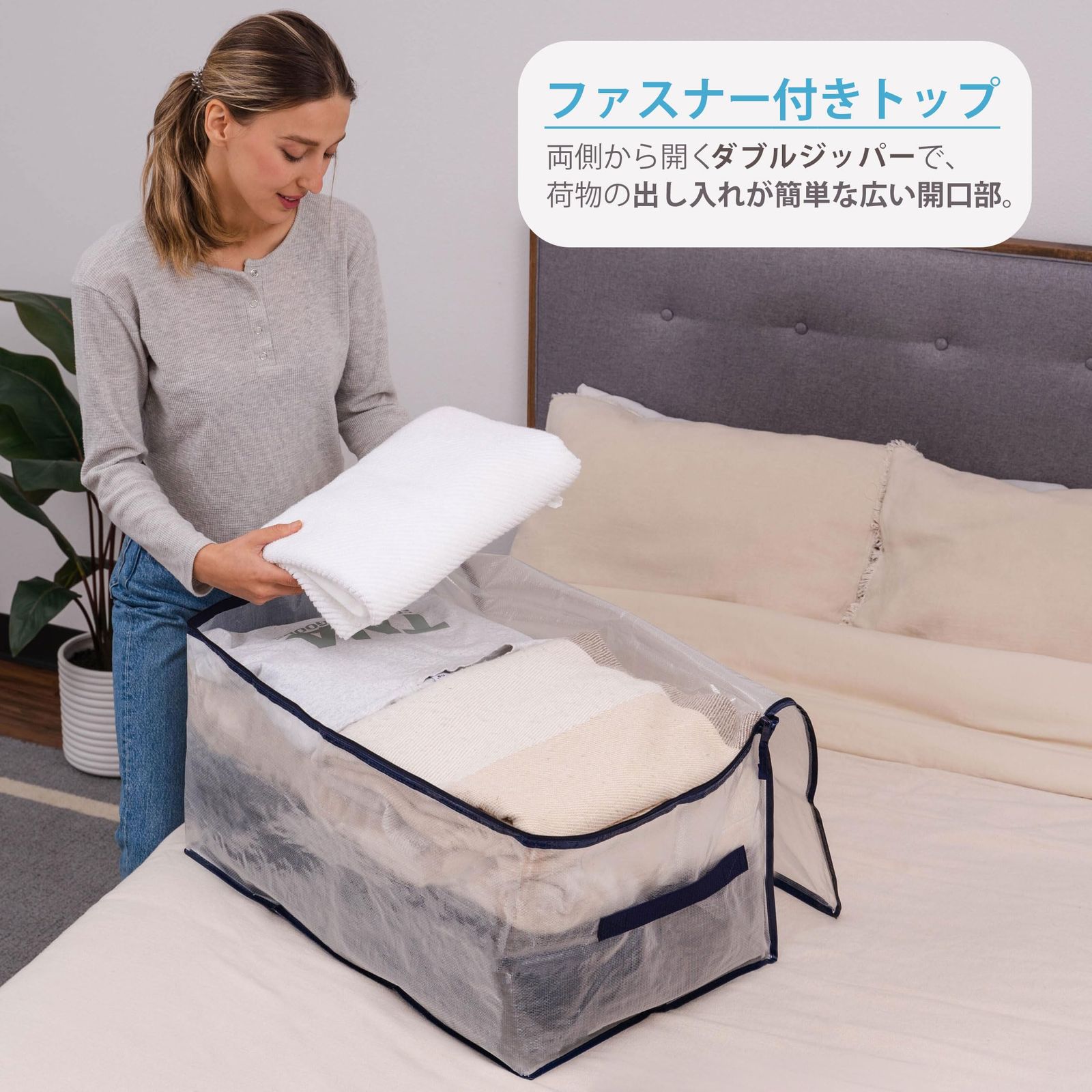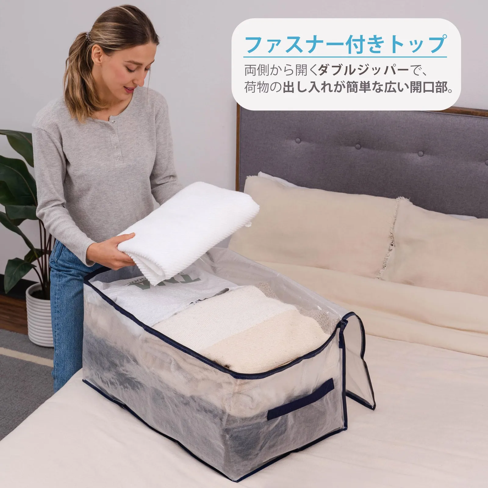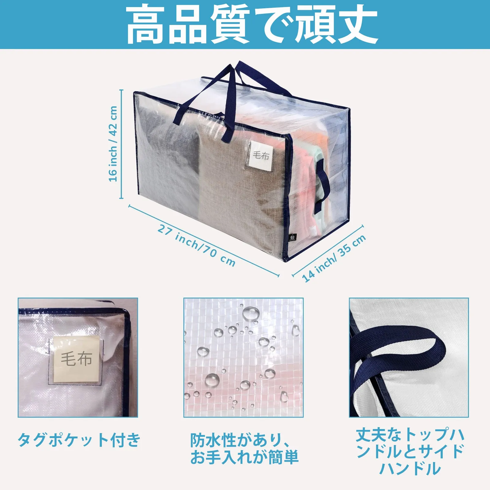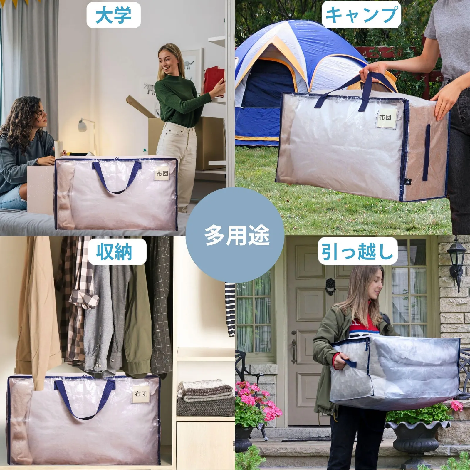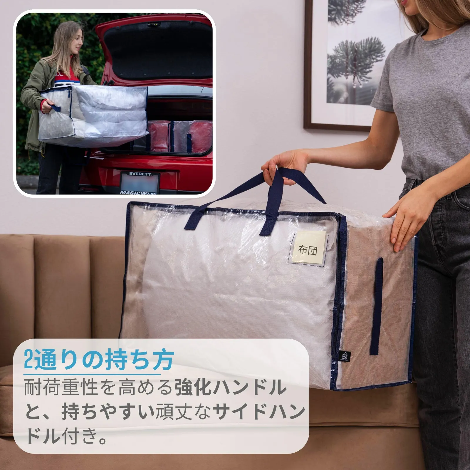 【数量限定】【大人気】高耐久 耐水 折りたたみ 2ペア持ち手付き ラベルポケット付き 3面ファスナー 収納ケース 布団袋 引越し 代替品 布団収納 引越し用ダンボール 衣類収納 103L大容量 押入れ収納 布団収納袋 (半透明 VENO 2枚セット)