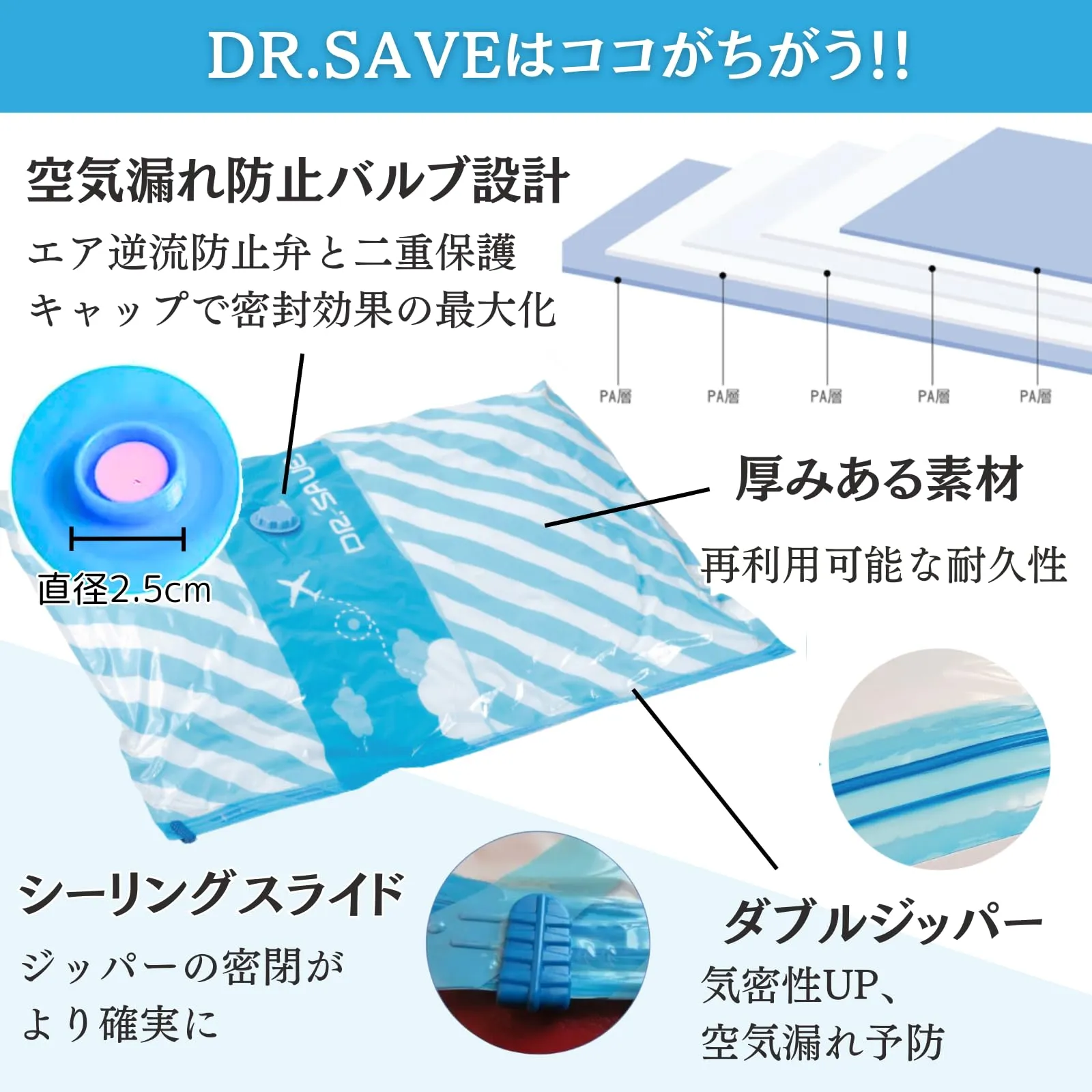 【在庫セール】ふとん 布団 衣替え 服 丈夫 破れにくい 厚手 (M(40×60cm)6枚入) バルブ式 収納 真空衣類圧縮袋 DR.SAVE テレビ情報番組ご紹介