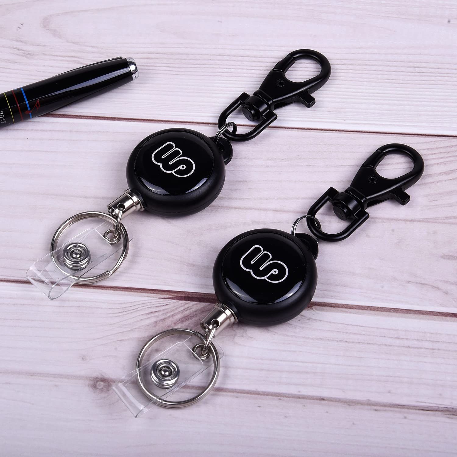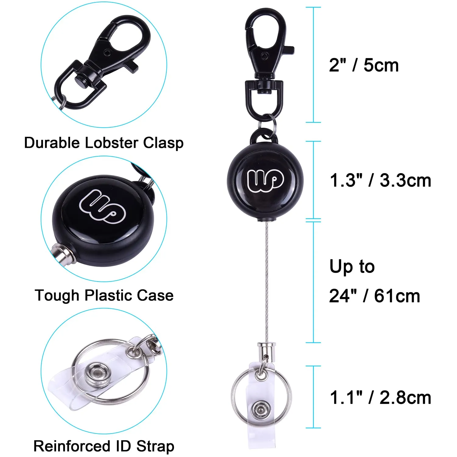 Wisdompro 吊り下げ名札用リール リールキーホルダー 強力 金属ワイヤー 伸びるリールストラップ リールクリップ 社員証/定期入れ/パスケース用 最長58cm 黒 2個入り
