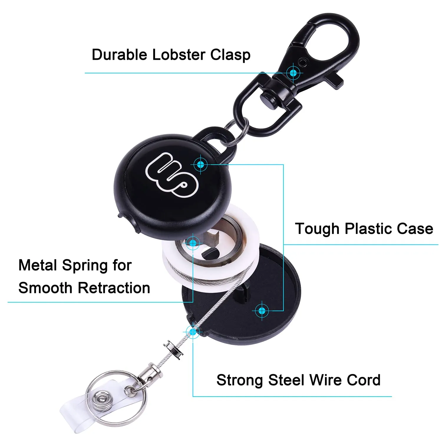 【材質】リール本体:プラスチック(PC) ワイヤー:ステンレススチール カラビナ:亜鉛合金 黒メッキ