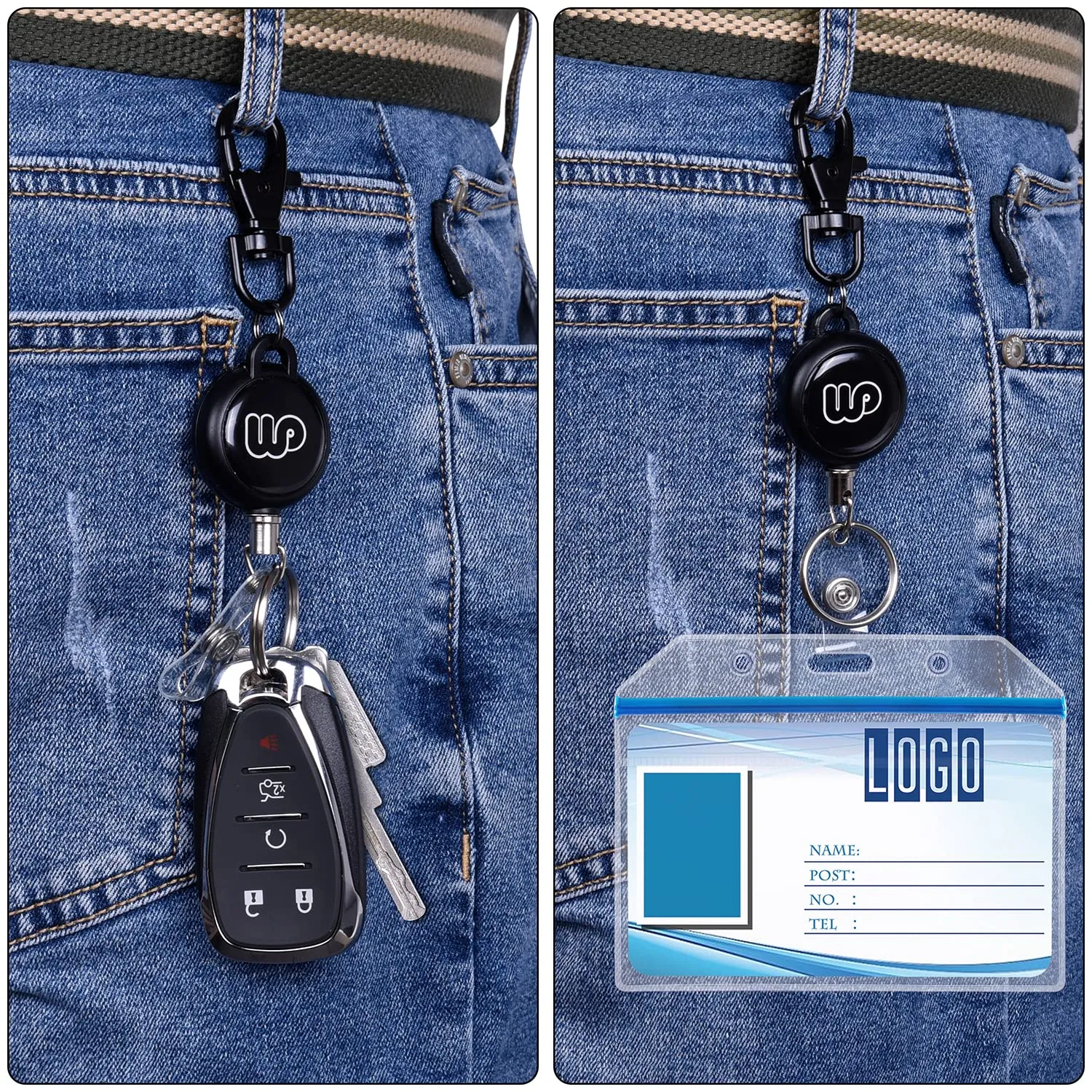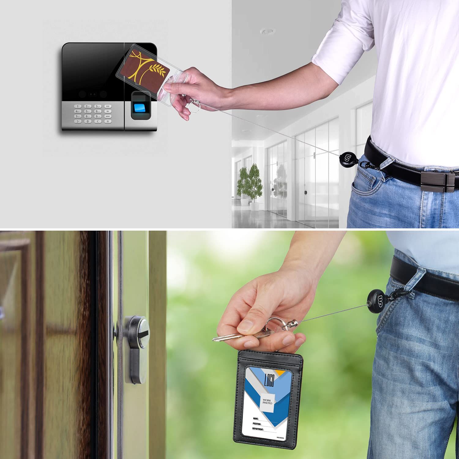 【リール式で伸縮自由】伸縮自在なリール式で、装着したまま、爪先立たず屈まずワイヤーを引くことだけでカードやカギなどを使えます。リトラクタブルワイヤーの長さは十分なので、パスケースや鍵なとを付けたら、自由に伸縮してスムーズに使用できます。