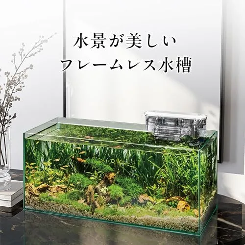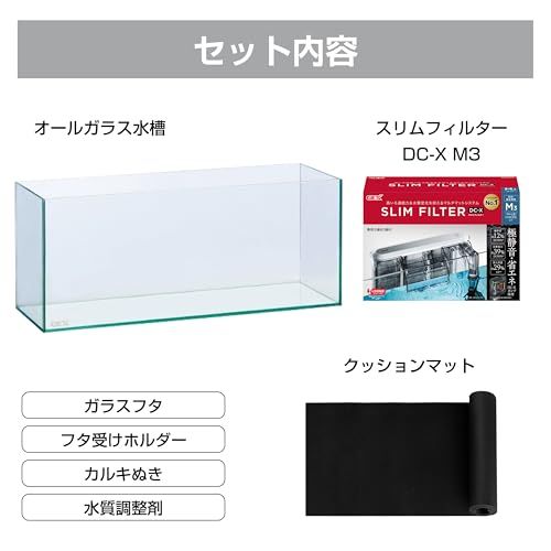 DC-Xポンプ採用のスリムフィルターをセット。極静音・省エネ。水槽はワイド設計、置き場所の自由度UPのスリムスタイル&水槽内すっきりのスリムタイプ外掛け式フィルター(スリムフィルター DC-X M3)をセット