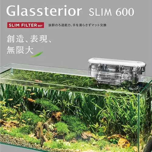 GEX ジェックス グラステリアスリム600 6点セット DCポンプ フレームレス水槽 W60×D20×H25cm 約26L【EC】t