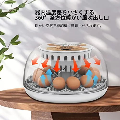 【大容量&多種類な孵化】毎回12個ニワトリサイズの卵を孵化できる大容量な全自動孵卵器です。ニワトリ12個、ウズラ卵、すずめ卵2436個など様々な種卵に対応できます。いろんな種卵の孵卵にチャレンジできます。種卵の大きさによって、可能な孵化の数も違っています。