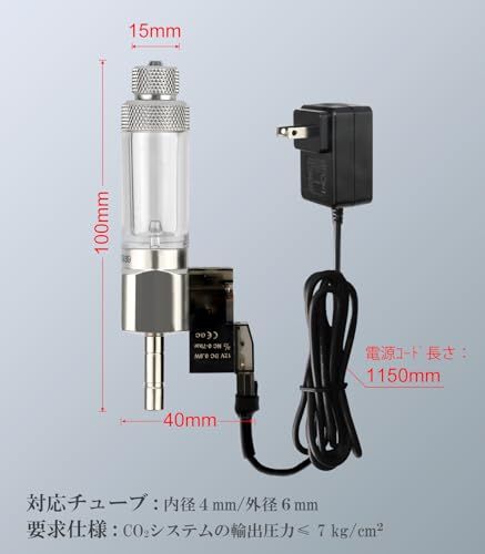 クレシー BCP200S-JP 水槽水草用CO2電磁弁 バブルカウンター 電気弁一体型 ワンタッチ継手(逆流防止機能付き)t