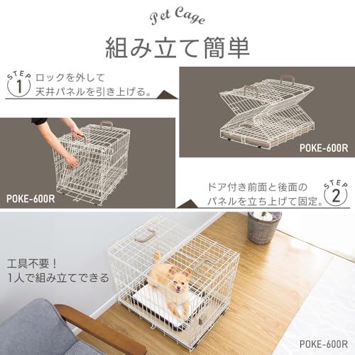 アイリスプラザ 折りたたみケージ 犬 猫 防災 ライトナチュラル 中型犬用 幅54.5×奥行77×高さ60.5cm POKE-750Rt