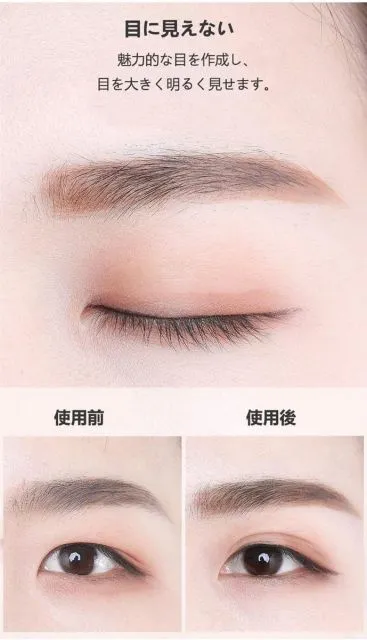 【実用】非常に目に見えない透明色。強粘着&防水に優れているので1日しっかりキープします。魅力的な目を作成し、目を大きく明るく見せます。細いまぶたがはっきり見えるようになります。目を強調したい人にも適しています。