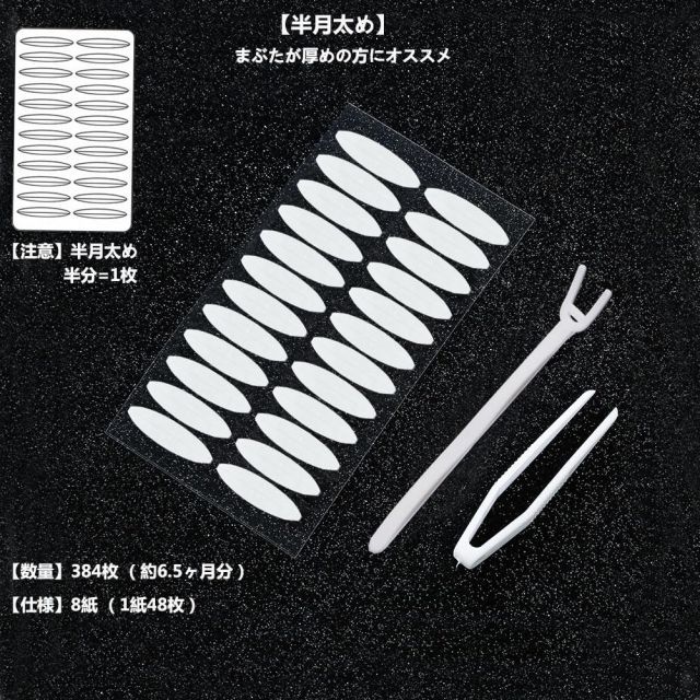 ふたえテープ 384枚 まぶたテープ Yesmart 二重 両面 強力 二重テープ 極薄 透明 二重テープ 二重まぶた 目立たない テープ YES103 (【半月太め】)