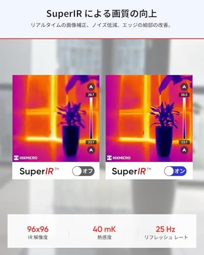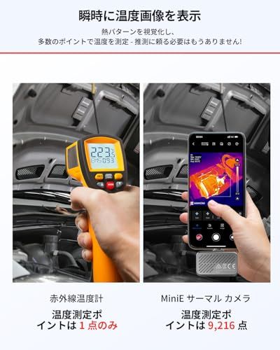 HIKMICRO MiniE サーモグラフィー サーマルカメラ 赤外線カメラ スマホ用- iOS/Android、192×192 SuperIR 画像強化、25Hzフレームレート、スマートフォン/タブレット用、-20°C~400°C測定温度範囲、USB-★tm