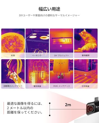 「はじめてのサーマルカメラに最適」 家の断熱チェック、電気設備の点検、水漏れ箇所の特定、ペットの健康観察など、温度の"見える化"で暮らしや仕事がもっと便利に。専門知識不要で、スマホに繋ぐだけで使えるエントリーモデルです。