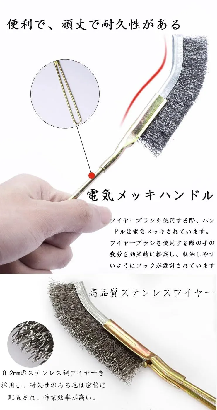 【特性】曲線形状のヘッドは、さまざまな表面や隅に適したフィット感を提供します,隙間ブラシとしても使用可能な、強力なステンレスワイヤーブラシです。