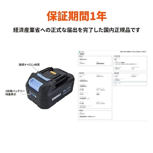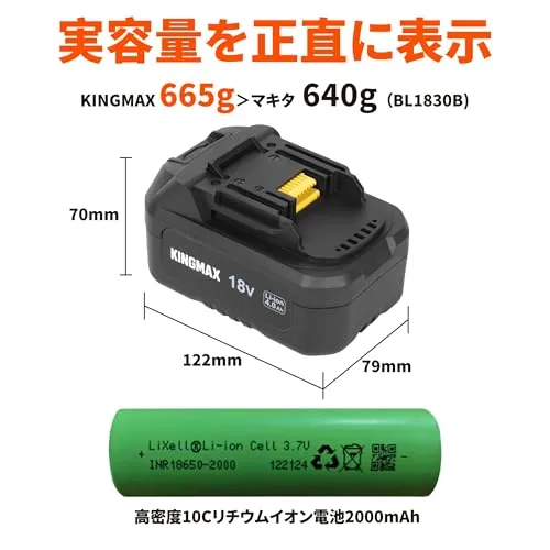 【実容量を正直に表示】KBP1840の容量はマキタBL1830より33%増加し、コストパフォーマンスが最高です。BL1830Bの重量は640gであるのに対し、KINGAMXバッテリーは665gです。実容量を正確に表示しているので、過大表記なしの信頼できる性能、期待外れなしです。