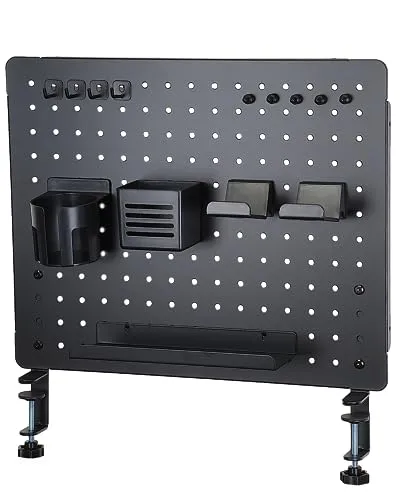 EastForce ペグボード デスクパネル (ブラック, 大) マグネット対応 ゲーミング パネル 卓上収納 フック トレー付き クランプ式 有孔ボードrc