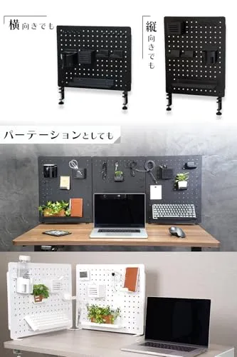 嬉しい2WAY仕様:ペグボードは縦向きにも横向きにも取り付けることができます。デスクサイスに合わせて自分好みに取付可能です。