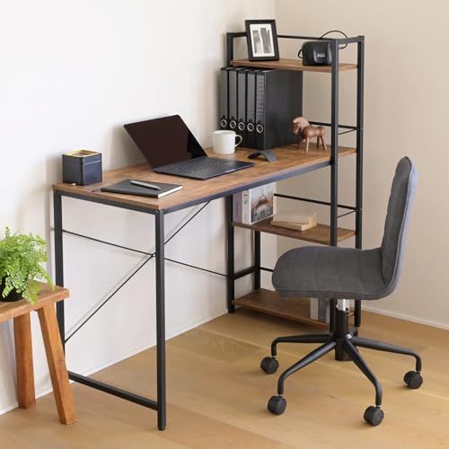 山善(YAMAZEN) ラック付きデスク (棚は左右付け替え可) 机 棚付き パソコンデスク PC 勉強机 A4対応 傷汚れに強い天板 幅114×奥行52.5×高さ120cm ワークデスク 省スペース 収納 アンティークブラウン/サンドブラック GRD-1rc