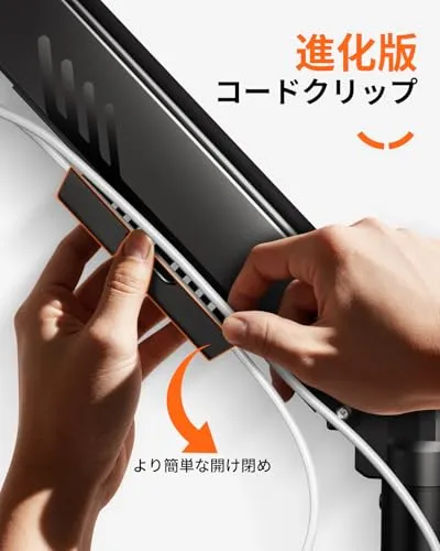 【デスクをもっと自由に使える】天板面積の80%以上を節約し、キーボードやマウス、ノートPCを置くスペースをたっぷり確保。アーム内蔵のケーブル管理機構で、配線もまとめてすっきり。ごちゃつきがちなデスク周りを、整頓されたクリーンな空間に変えます。
